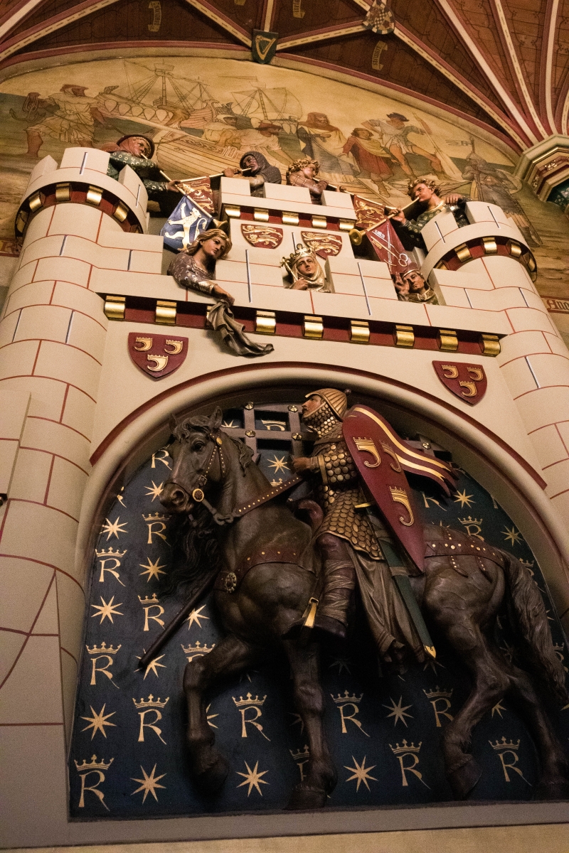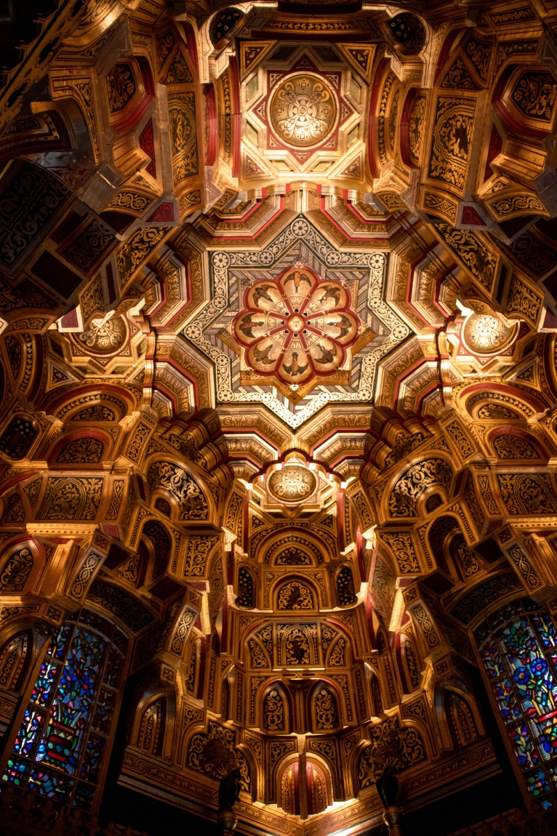 Cardiff Castle changed owners many times throughout the centuries and its last proprietors, the Marquess of Bute, definitely left their stylistic fingerprint on the place. To say that the interior of the Georgian main range is a bit kitschy would be an understatement. However, it also features a room called the “Arab hall”, which blew me away with its truly breath-taking ceiling.