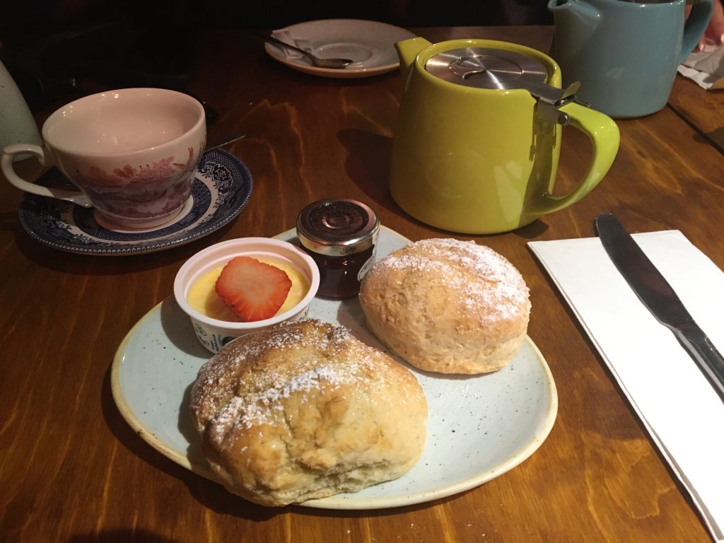 Inspiration to Peter Gabriel’s song “Solsbury Hill”, Little Solsbury Hill was the destination of my first day trip. I went there with two fellow students, who eventually would become two of my closest friends during my stay in Bath. Located just outside the city, Little Solsbury Hill was the location of an Iron Age hill fort. It was also the site of a environmental protest against the widening of the A46, a major road in England. The view one has from the top of the hill is amazing and I would have loved to stay there a bit longer and enjoyed the view, if it hadn’t been for the constant wind quickly draining me of any heat produced by climbing up the hill. Afterwards, Lina, Clara and I treated ourselves to a staple of British tea time: cream tea, which consists of a strong black tea and scones with clotted cream and jam. Let me just say that my love for scones started on that day.